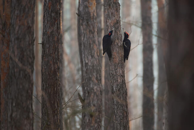 At the beginning of the spring I tried to make photo of black Woodpecker. I heard them, but cannot see. When I saw them I am afraid to trouble and made shot for a long distance.