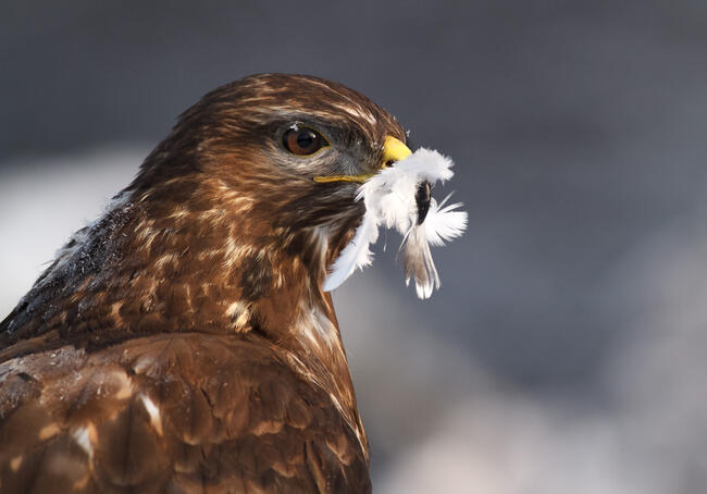 Egy hideg, téli napon készült ez a fotó, amin jól megfigyelhető a ragadozómadarak csőrében rejlő lehetőség. Segítségével hatékonyan szedi szét és fogyasztja el táplálékát.
