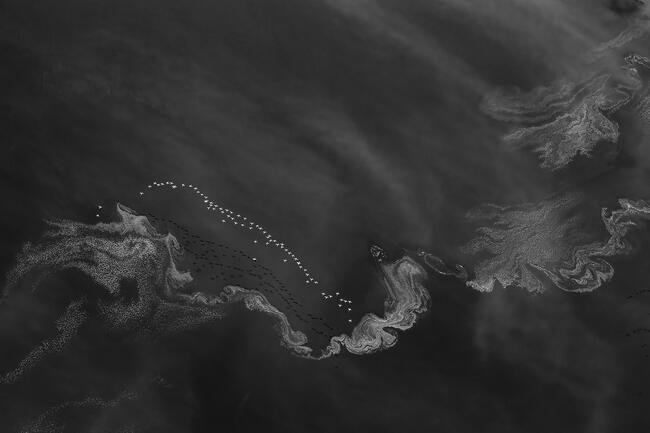 The image was taken from doorless helicopter at Lake Magadi, Kenya