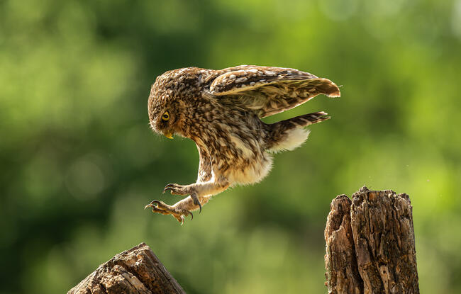 A kuvik repülés helyett az ugrást választotta, könnyed mozdulattal szökkent egyik fatörzsről a másikra.