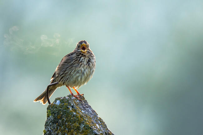 A felvétel Homoródszentpáli halastavak közelében készült egy áprilisi hűvös reggelen, amikor az énekelő sordély leheletét is sikerült megörökíteni.