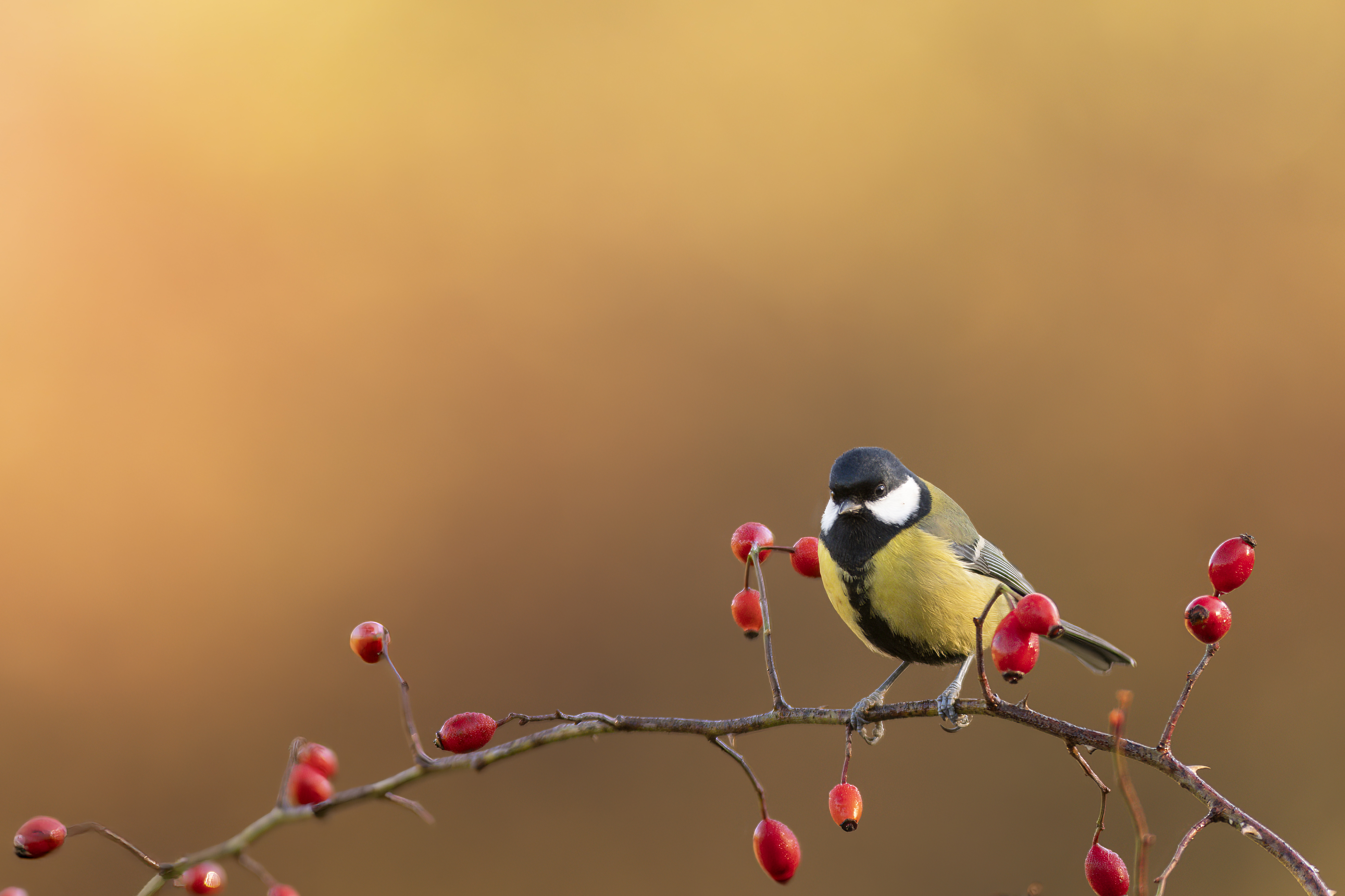 Csipkén csücsülő cinke