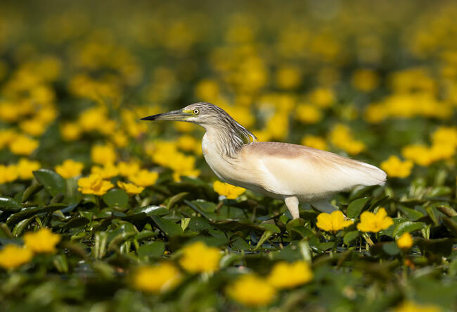 Úszó lesből készült a fotó. Ebben az időszakban élénksárga tündérfátyol borította a tó felszínét, ami nagyon szép környezetet teremtett a madarak fotózásához.
