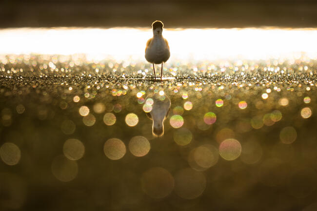 The photo was taken at sunset from a hide on the shore of a small lake.