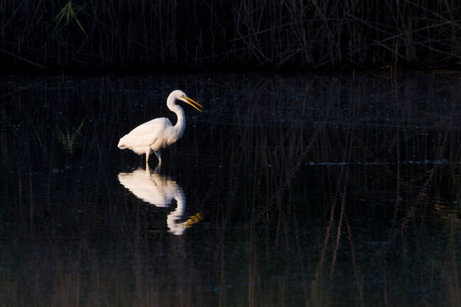 Az év nyári időszakában, a Berkes tanyánál felkelő Nap, ezüstösen ragyogja be a nagyobbik tavat. Az ott tartózkodó madarak fényben úszva, szó szerint ragyognak. A mögöttük lévő nádas, azonban még sötétben marad, így egy természetes kontrasztot adva.