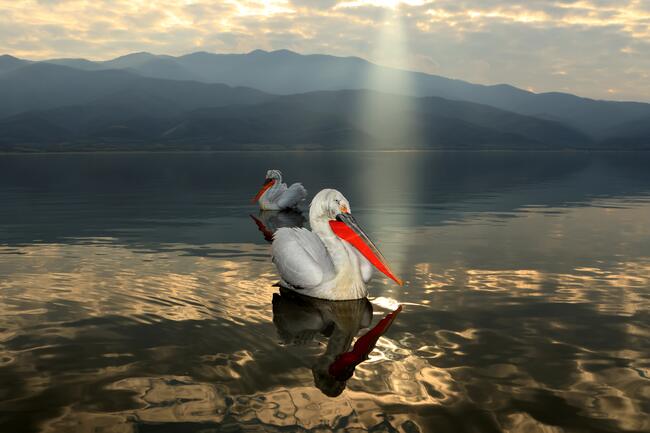 Kerkini-Tón hájóból készült a kép. Eső után a felszakadozó felhőzeten átsütött a lemenő nap sugara és csodálatos fénypászma vetült a madár közelébe. Sikerült úgy helyezkedni, hogy a sugár a madárra vetüljön.