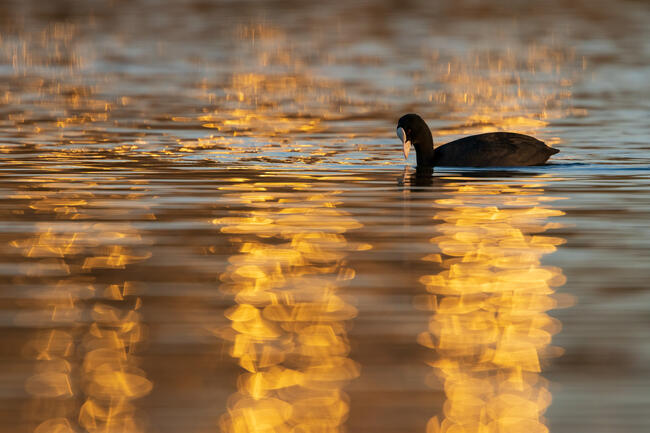 I took this photo near the port of my city in the evening where the lights of the lighthouses create these magnificent reflections on the water. After studying the frame I waited patiently for the bird to enter it.
