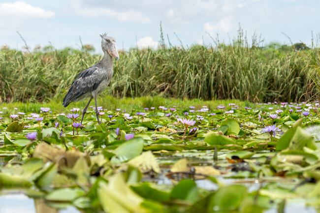 From Entebbe I took the boat to the Mabamba Swamp in de hope to find the shoebill. In order to enter the Mabamba Swamp I had to transfer to a smaller canoe. I leaned over the edge of the canoe so I could hold the camera just above the water to take this photo.